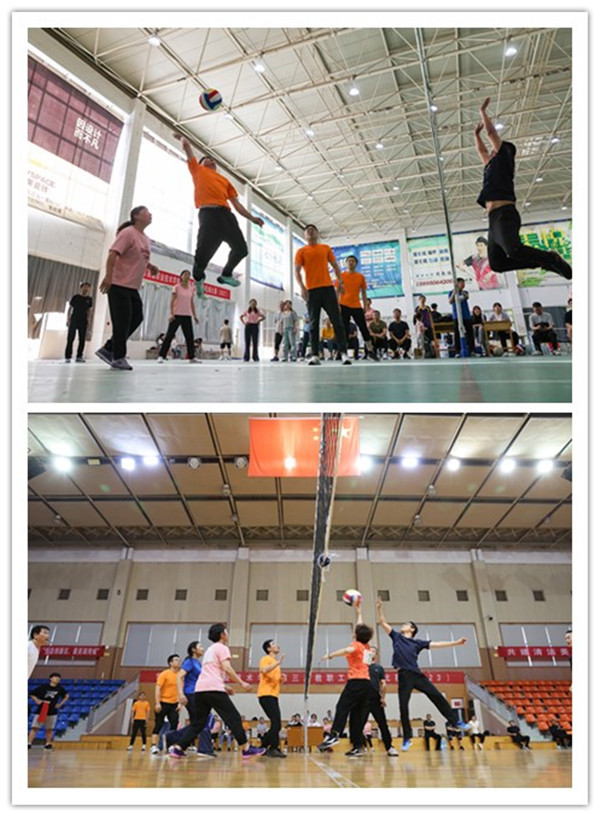 本次比赛于四月初发出通知,各分工会按照通知要求,广泛发动教职工积极参与,利用课余时间认真组织训练。学校9个分工会组队参赛,共有150余名教职工参与角逐。比赛在学校体育馆一楼二楼两个场地同时进行。
