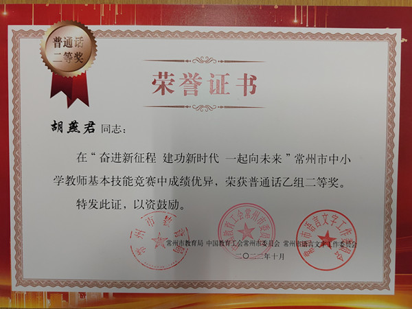 我校教师在常州市中小学"三字一话"教师基本技能竞赛中喜获佳绩