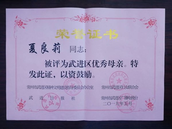 机械工程系夏良莉老师获武进区“优秀好母亲”荣誉称号