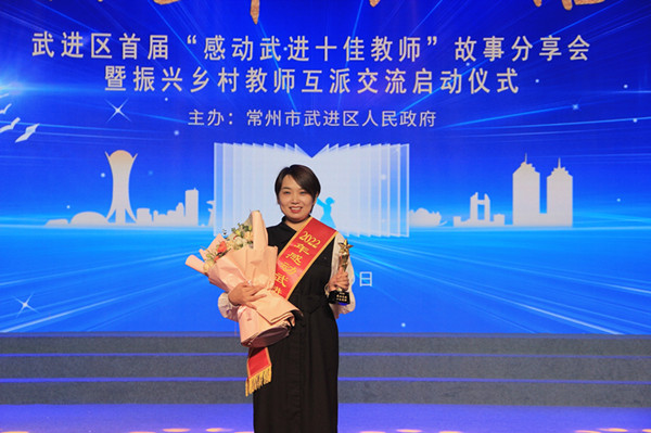 为深入学习贯彻习近平总书记有关重要指示精神,大力弘扬爱岗敬业、教书育人、为人师表的优良传统,不断深化教育行风建设,建设高质量教师队伍,推进武进教育高质量发展,武进区教育局在全区教育系统先后组织开展了“双十佳三好教师”和“感动武进十佳教师”评选活动。经过学校推选、区教育局组织专家遴选、市教育局专家评委综合遴选,我校钱月娟老师先后获得“常州市师德标兵”和“感动武进十佳教师”荣誉称号。为庆祝第38个教师节,武进教育专门开设“吾有优师”专栏,展示首届“感动武进十佳教师”的风采,钱月娟老师的先进事迹也在专栏上展现。