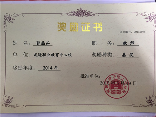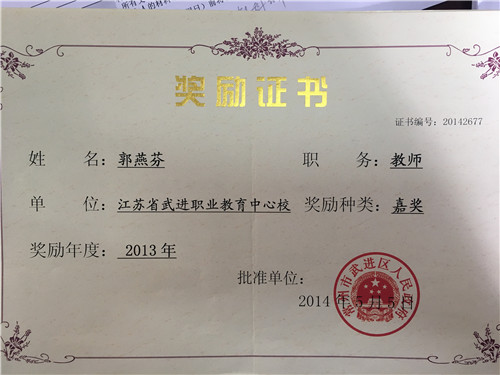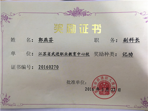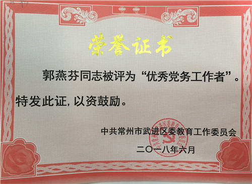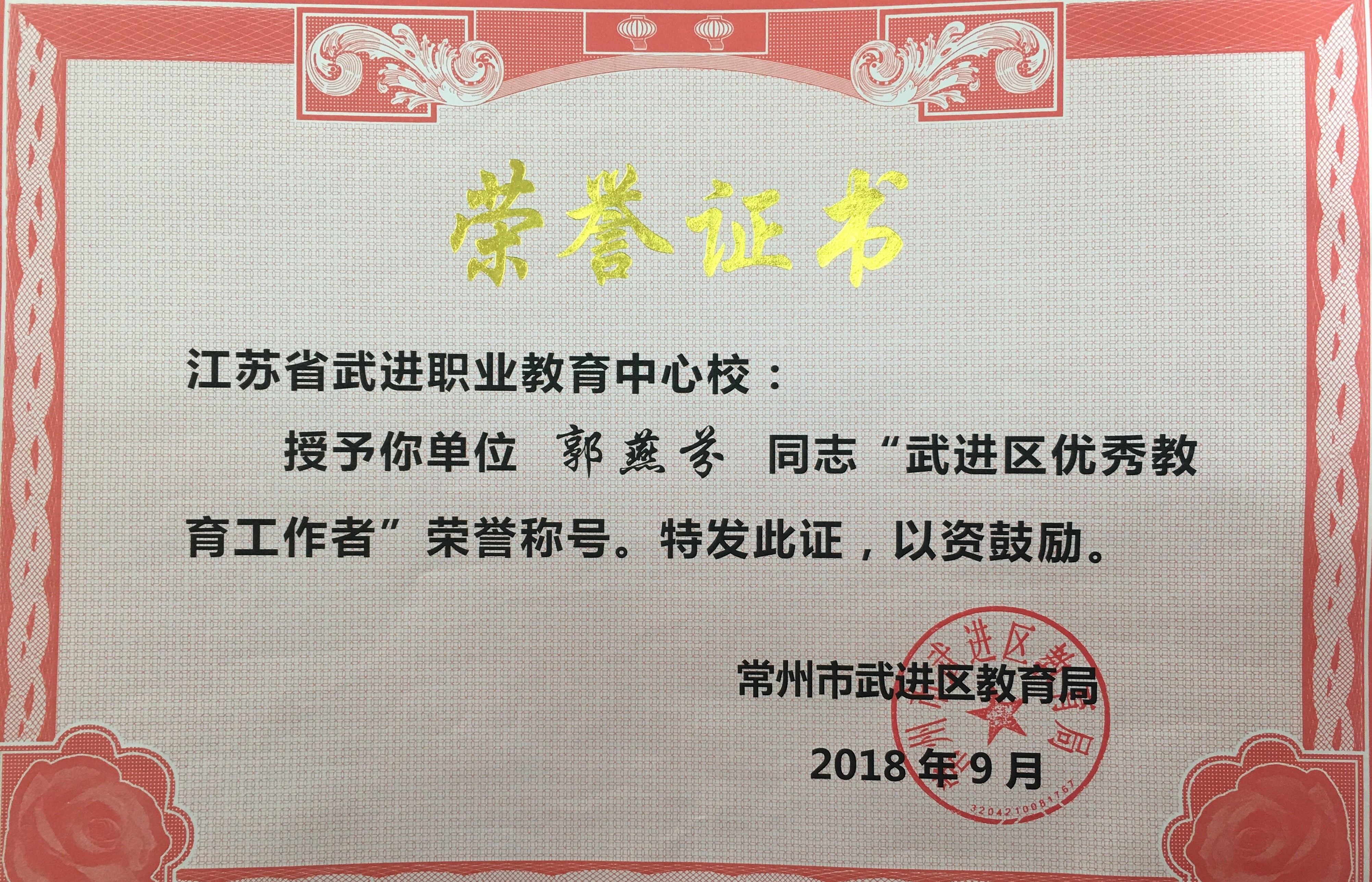 郭燕芬,1983年11月生,女,中共党员,讲师。2006年6月毕业于江苏大学汉语言文学专业,2017年7月取得青海师范大学在职硕士学位。12年,被评为讲师,2006年8月就职于江苏省武进剑湖职业高级中学,2008年8月就职于江苏省武进职业教育中心校,现任校电气系教务科副科长。 工作以来,曾获得武进区优秀党员、优秀党务工作者,武进区优秀教育工作者,连续三年获得区政府嘉奖,记三等功,区、市级优秀班主任,武进区宣传先进个人等荣誉称号。积极参与教科研工作,参与省级课题三次,市级规划课题一次,发表省级论文四篇,曾开展区级公开课两次。15年常州市两课评比中获研究课,18年常州市教学大赛信息化教学设计一等奖。