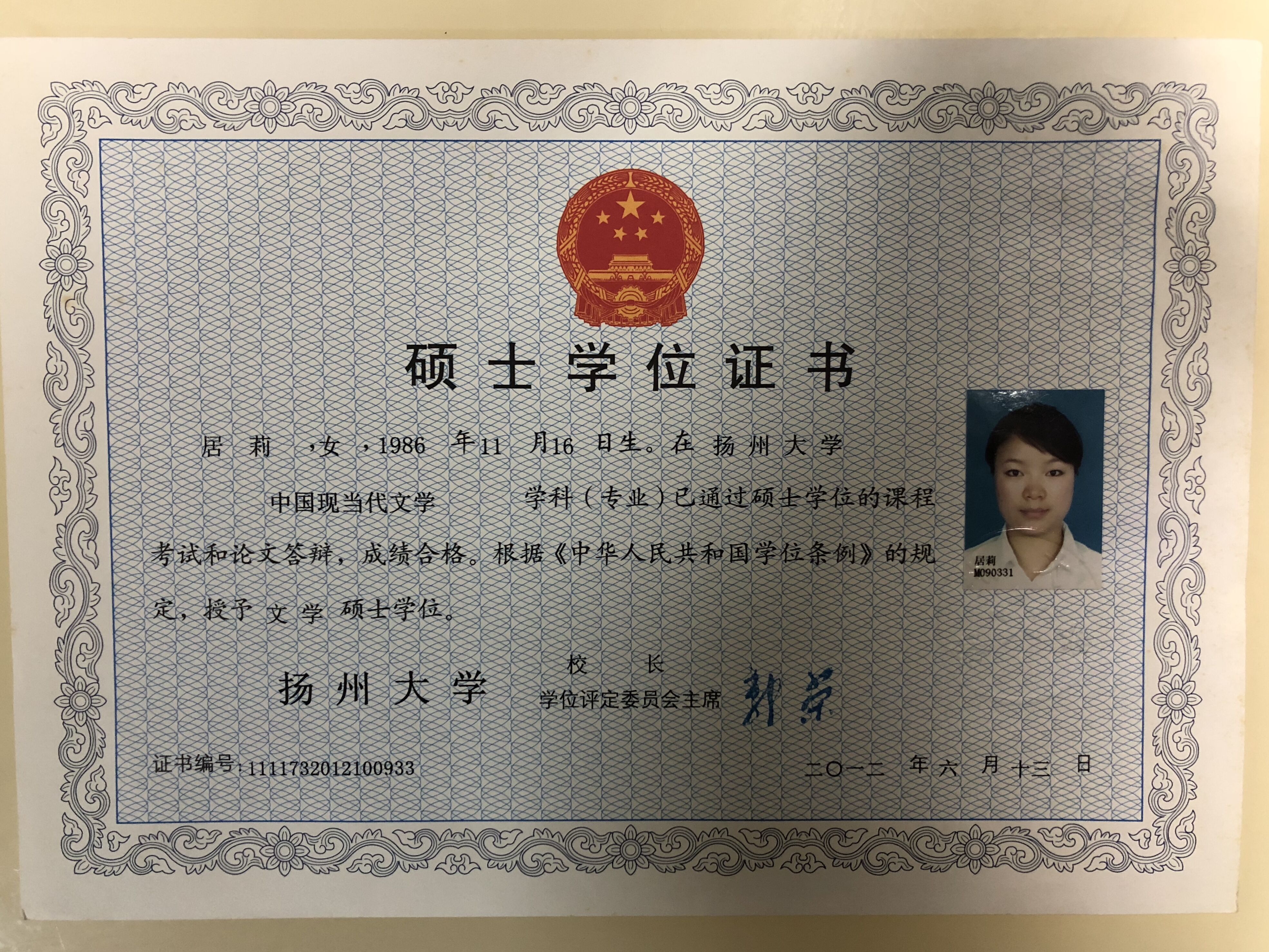 居莉,1986年11月生,女,中共党员,讲师。2012年6月毕业于扬州大学中国现当代文学专业,硕士研究生。2006年8月就职于武进开放大学,2018年8月就职于江苏省武进职业教育中心校。