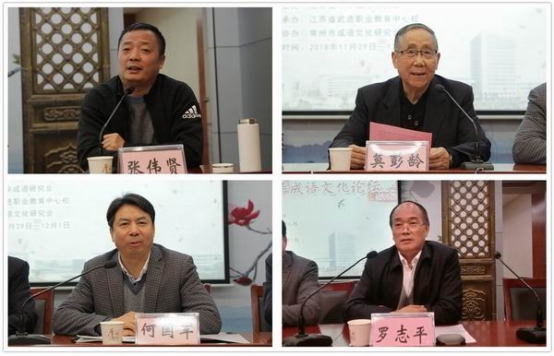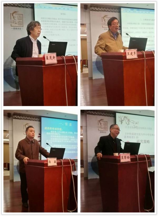 随后,论坛特邀嘉宾,中国青少年传统文化教育研究院副院长、曲阜师范大学教授崔茂新,南京晓庄学院文学院副院长、教授郭骏,苏州大学文学院教授、博导王建军和常州工学院原人文学院院长、教授莫彭龄分别作题为《成语文化与新时代学校教育》、《关于学生成语学习量的思考》、《用诗词成语来装点新时代校园文化》和《中华成语文化与中小学生核心素养培育》四个主旨报告。他们从成语的历史渊源、发展变化、研究现状、与学校教育融合等不同视角,探讨了成语这一极具汉语特色又深蕴中国文化无穷魅力的语词现象。