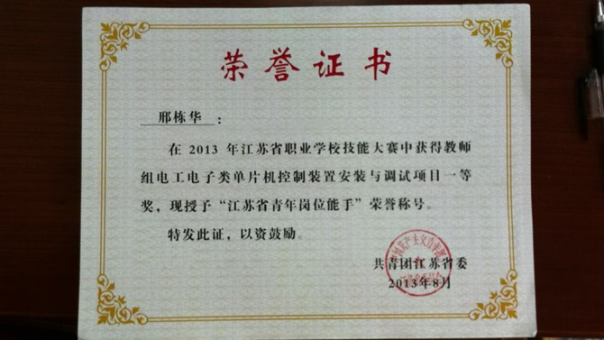 邢栋华-省青年岗位能手-2013