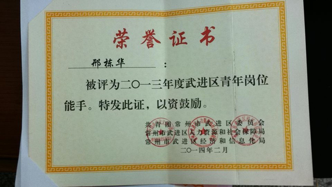 邢栋华-武进区青年岗位能手-2014