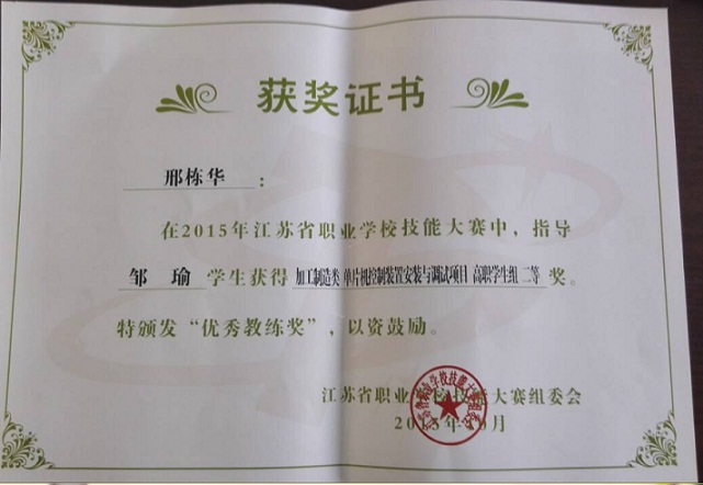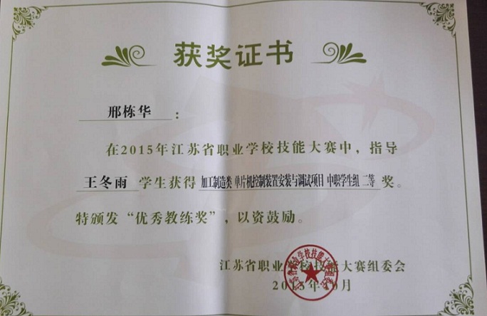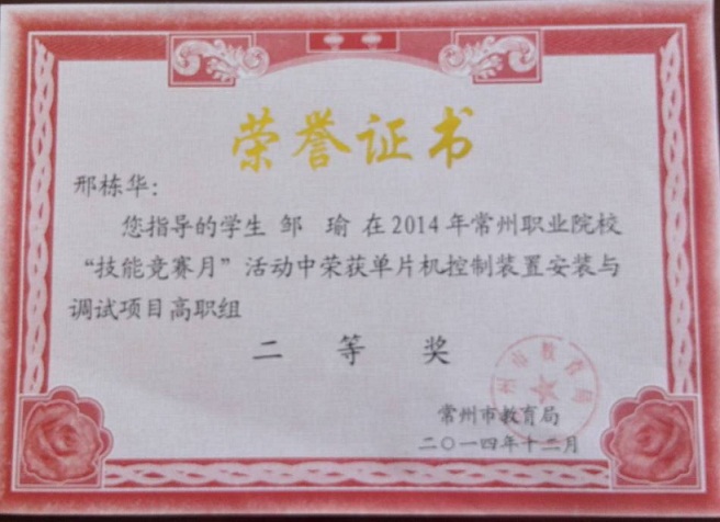 邢栋华-指导学生省技能大赛二等奖-2015