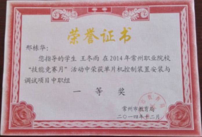 邢栋华-指导学生市技能大赛一等奖-2014