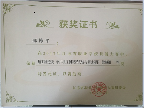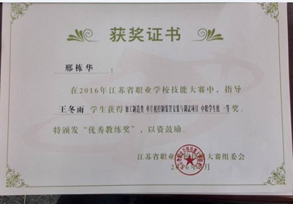 邢栋华-指导学生省技能大赛一等奖-2016