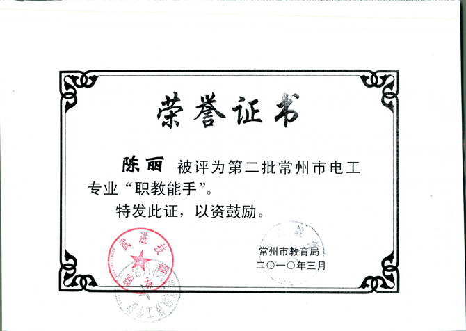 陈丽-常州市职教能手-2010