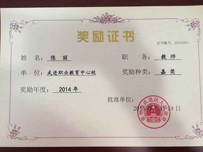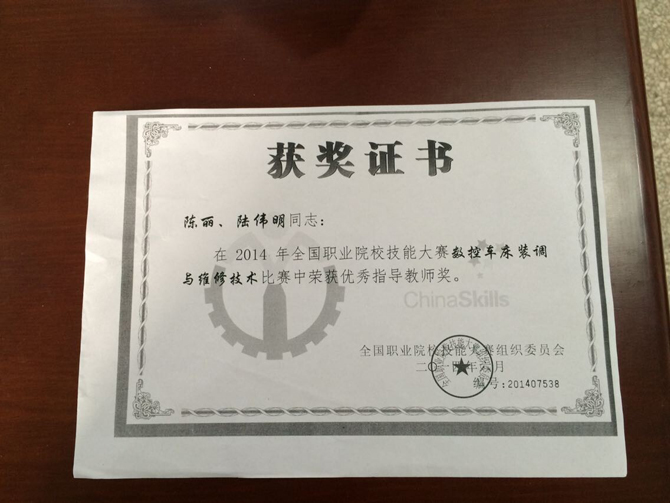 陈丽-全国技能大赛优秀指导教师-2014