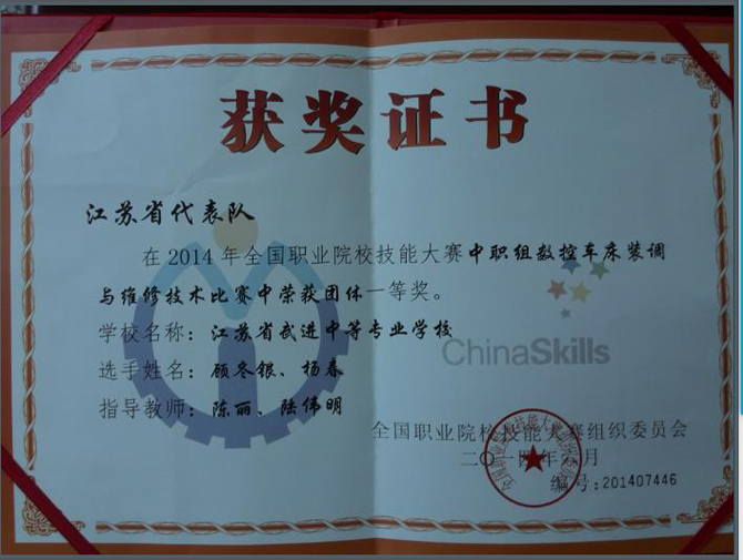 陈丽-全国技能大赛中职组团体一等奖-2014