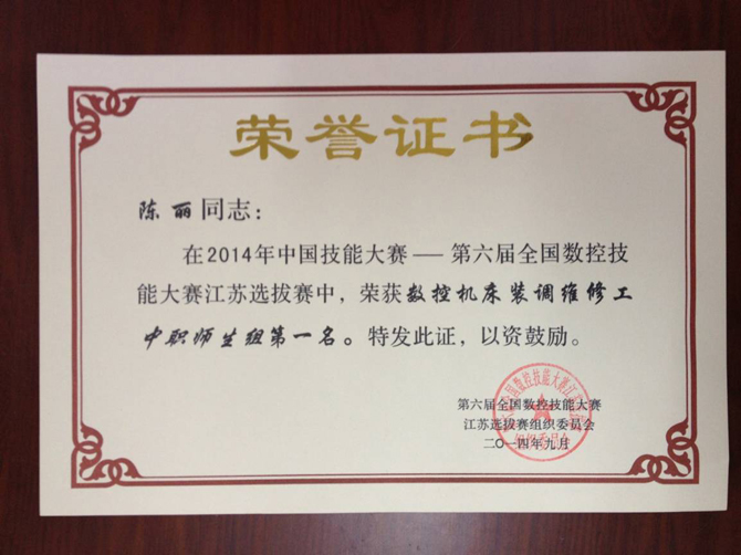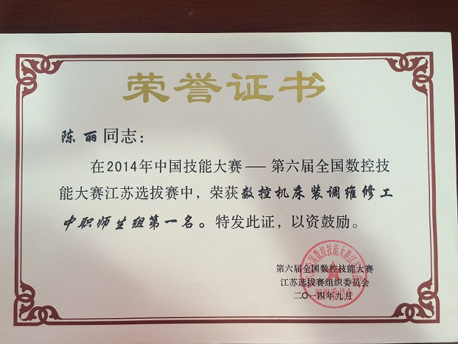 陈丽-国家技能大赛第一名-2014