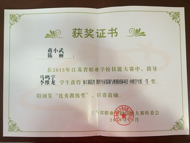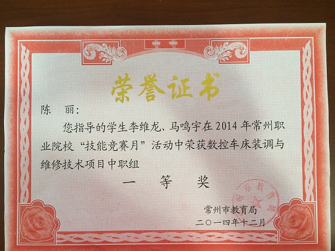 陈丽-指导学生省技能大赛一等奖-2015
