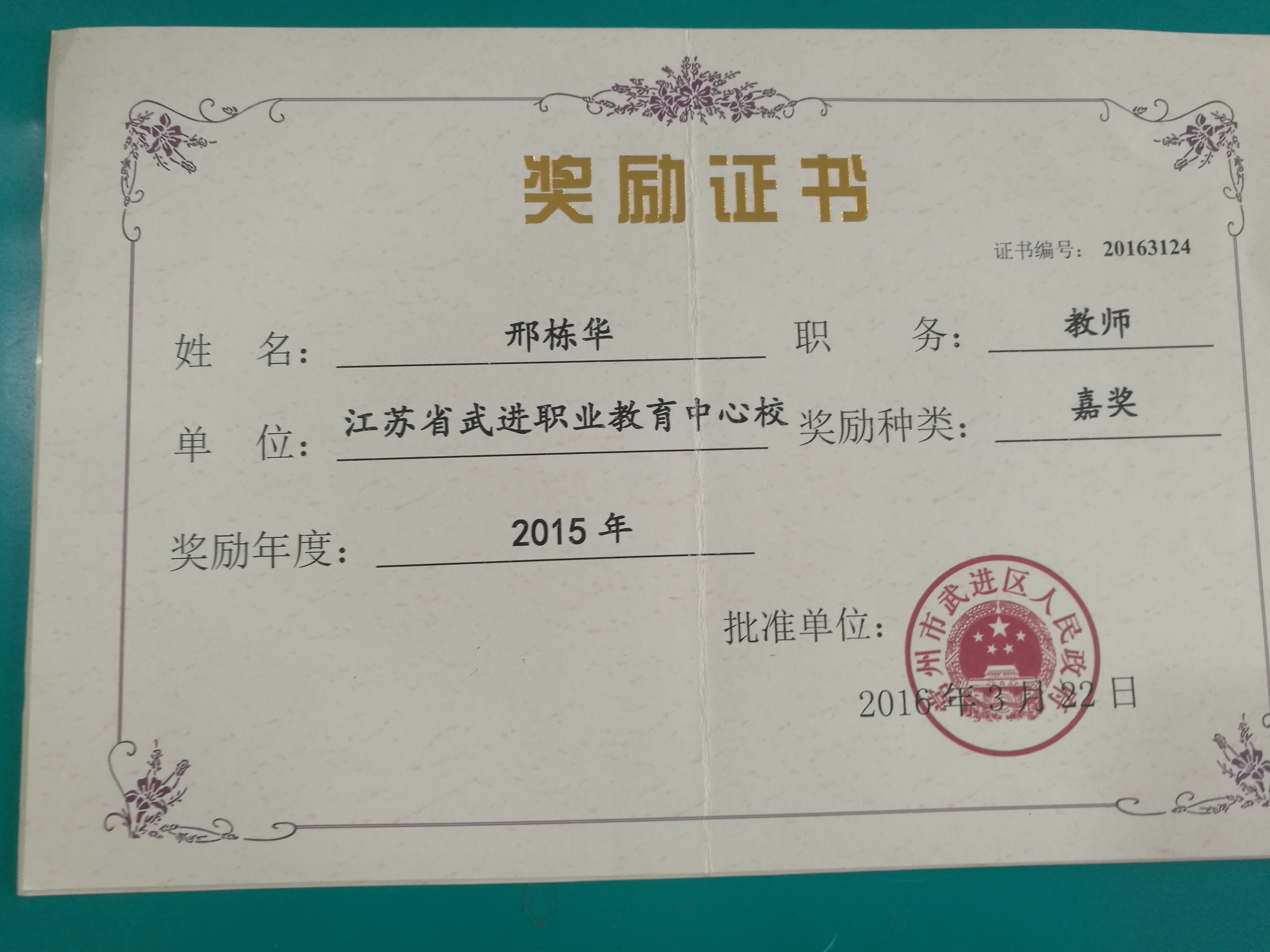 1.2015政府嘉奖