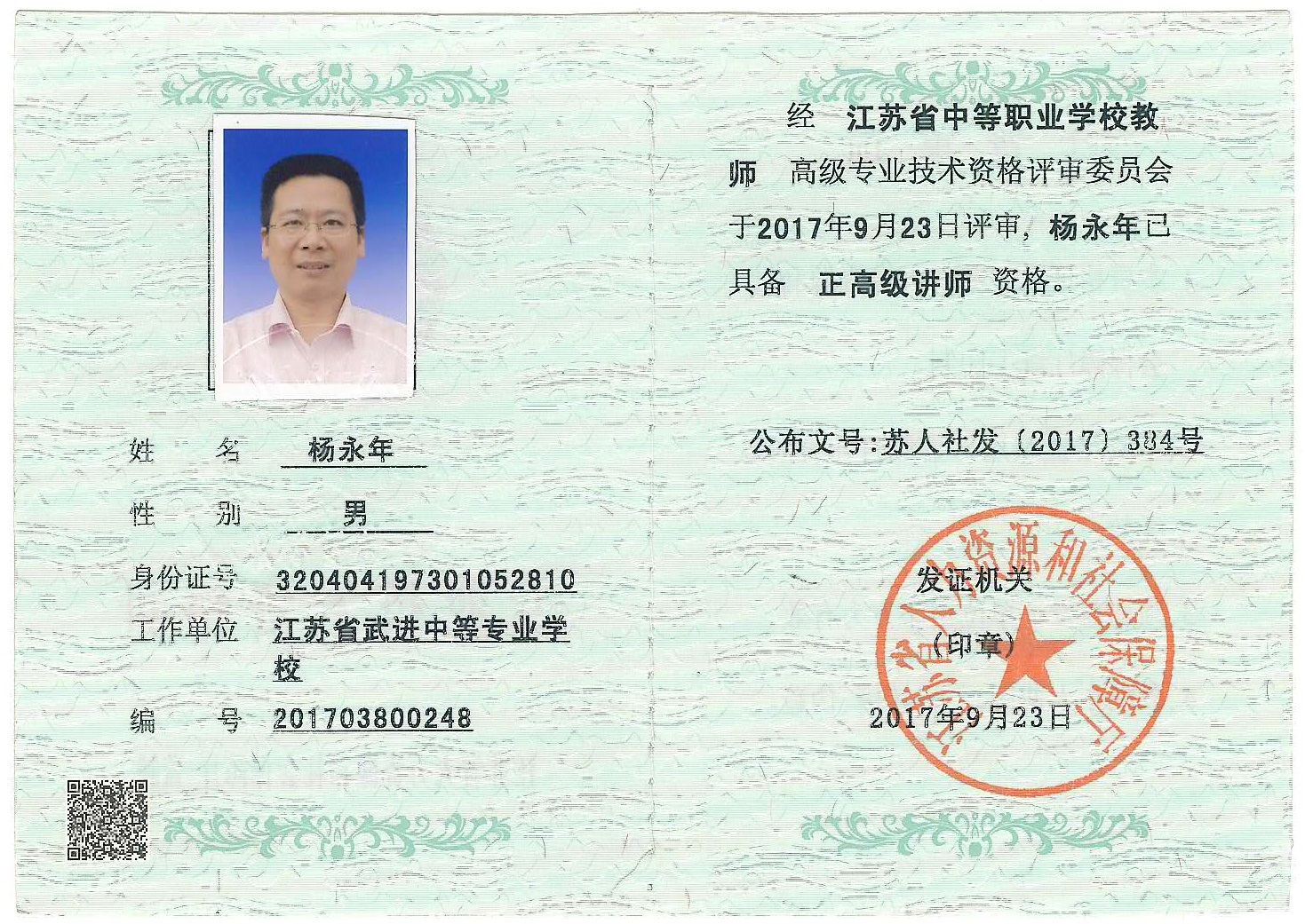 杨永年—正高级讲师—2017年