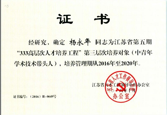 杨永年-省第五期“333高层次人才培养工程”第三层次培养对象