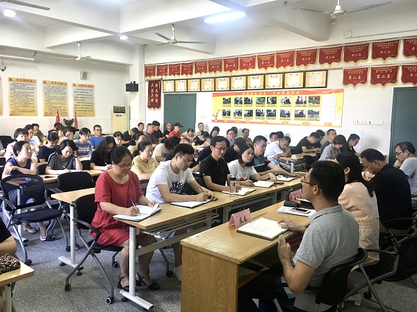 (全体教职工认真聆听)