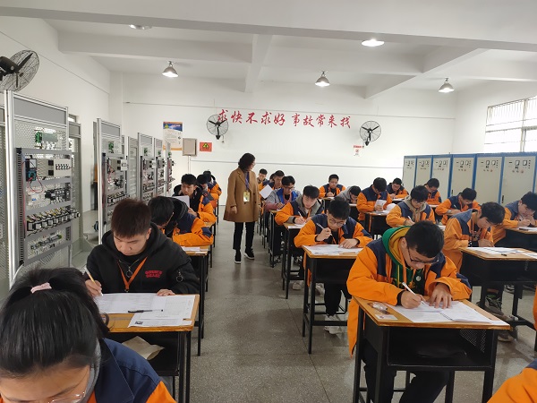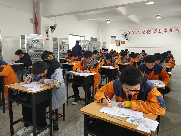 考试前一天,学院教务科按照鉴定科的要求,精心准备考场及所需设备。考试当天,考评组长陈雪艳带领考评员徐建东、汤旭芳、杭萍,认真检查考场的设施设备,严格遵守考评人员守则和考评规章制度,按照公平公正原则进行电工高级考核认定。