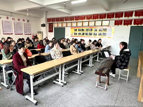 接着吴馨钰老师为大家献上古筝弹奏。弦间轻舞飞扬的手指,演奏出一种神圣醇美的天籁之音。曼妙的天籁之音,让大家感觉心旷神怡。