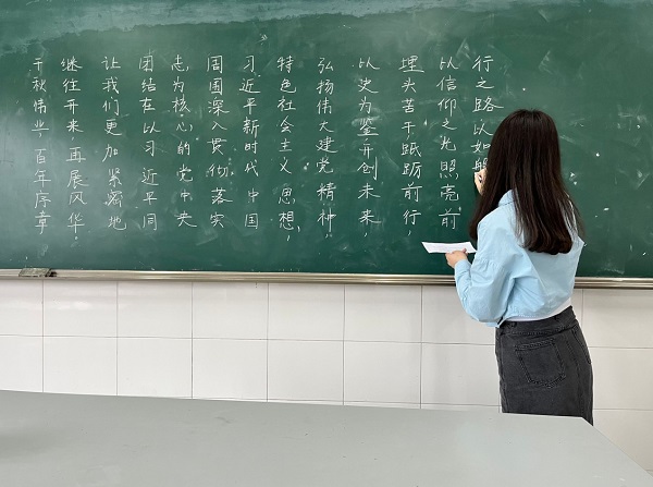 为贯彻落实全面深化新时代教师队伍建设的总体要求,鼓励激励全体教师强化“三字一话”教学基本功和教学技能训练,提升新时代教师教育教学综合素养,五月份我校组织开展教师基本技能竞赛活动。本次竞赛主题为“奋进新征程,建功新时代,一起向未来”,竞赛分硬笔字、毛笔字、粉笔字和普通话四个类别。