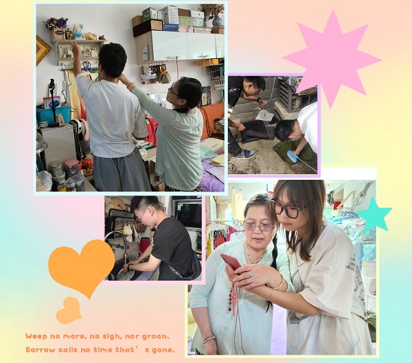 经过班级团委学干活动前期的周密计划与组织,全体志愿者们都对本次活动充满了信心和期待。活动当天,志愿者们一早便带着慰问品和青春的热情来到了王奶奶家中。王奶奶对志愿者的到来表示了欢迎,并和青年们亲切交流畅谈,向大家讲述了自己的经历和故事,志愿者们听得津津有味,大家被王奶奶乐观坚强的精神所打动,对王奶奶也有了更多地了解。接着,志愿者们分工协作,各司其职开始了帮扶活动:有的打扫卫生、有的教王奶奶使用智能手机、有的协助安装物品,还有的则在厨房内制作美味的午餐。大家忙得热火朝天,王奶奶开心得笑着,屋内升腾起浓浓的暖意。