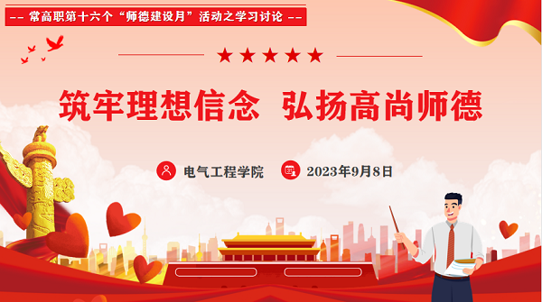 在第39个教师节来临之际,为了进一步引导全体教师坚定理想信念、陶冶道德情操、涵养扎实学识、勤修仁爱之心,更好地树立“躬耕教坛、强国有我”的志向和抱负,9月8日下午,电气分工会组织全体教职工开展师德师风学习讨论活动。