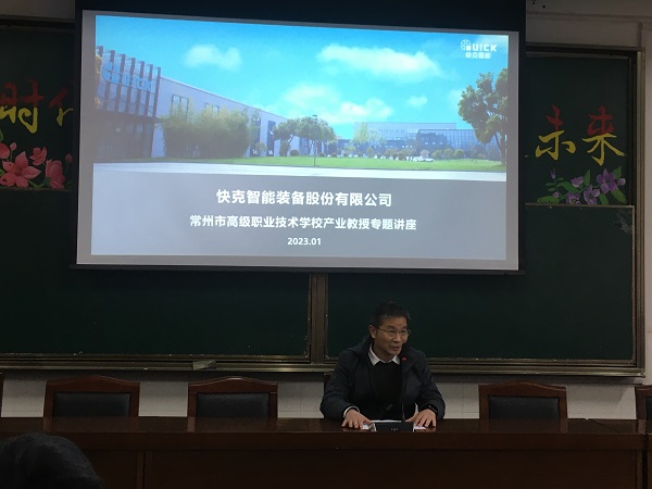 元月11日下午,常州市高级职业技术学校智能制造学院产业教授、快客智能装备股份有限公司副总经理、技术总监窦小明来我院作专题讲座,电气工程学院130位学生聆听了讲座,讲座由学院副院长庄春主持。