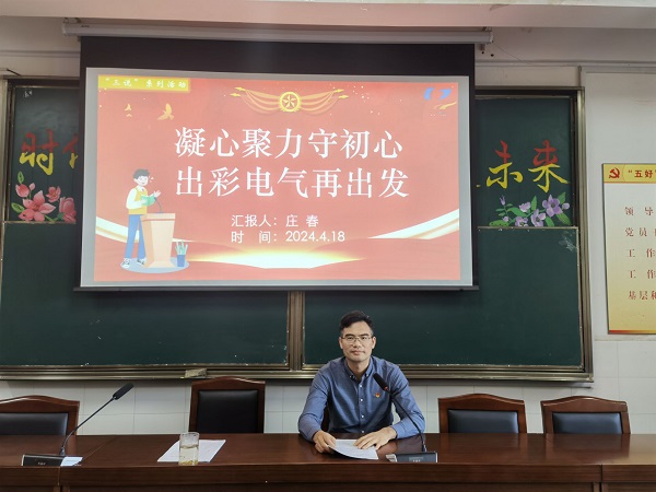 根据学校工作部署,结合电气工程学院工作实际,4月18日下午在二楼党员活动室,电气工程学院党支部举行了“三说”活动专题党课,本次党课由副院长庄春主讲,主题为《凝心聚力守初心 出彩电气再出发》。