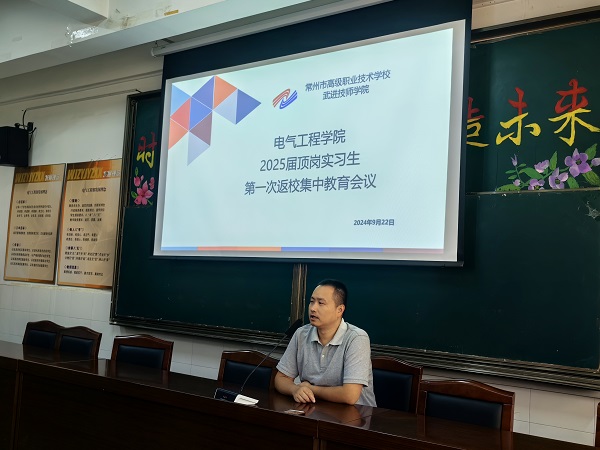 为推动“校企合作,产学结合”政策,促进专业成长,提升学生专业素养积累和实践经验,电气工程学院于2024年9月22日上午在电气工程学院会议室召开2025届高技顶岗实习学生返校集中教育。会议由电气工程学院学生科副科长徐红金主持,20级高技班主任参加会议。
