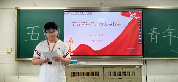 为弘扬五四精神,激励青年学子铭记历史、勇担使命,5月22日下午,电气工程学院23631在本班教室举行了一堂“五四青年节的历史与传承”主题团课。学院团委曾万明老师和学院各支部团支书观摩了本次团课,团课由23631班团员符骏同学主讲。