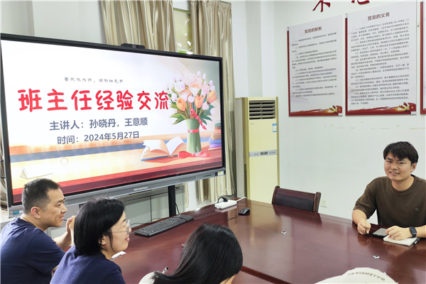 5月27日下午,本科部全体班主任在509会议室举行了本学期班主任大讲堂活动,由孙晓丹、王意顺两位老师分享了工作经验。