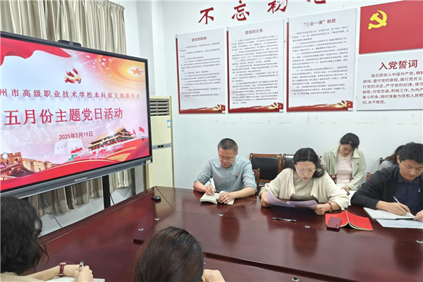 2025年5月19日下午,本科部党支部在17号楼509会议室开展五月份主题党日活动。活动由党支部副书记李炎主持,本科部全体党员参加了本次活动。