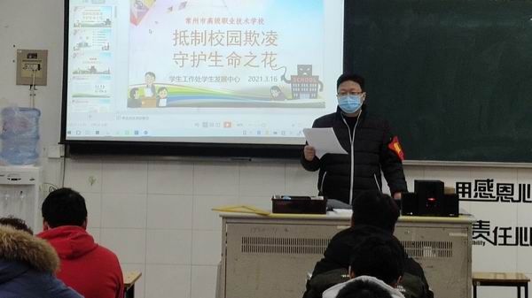 为贯彻落实国务院教育督导委员会办公室《关于开展校园欺凌专项治理的通知》精神,结合武进区教育局防范中小学生欺凌专项治理行动工作实施方案精神,加强对在校学生的法制教育,减少校园欺凌事件的发生。机械工程学院全体班级,于2021年3月16日下午开展了以“抵制校园欺凌 守护生命之花”为主题的宣传教育活动。