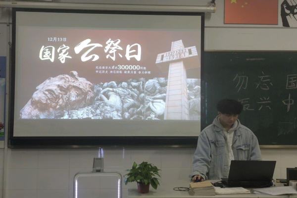 二战以后,主要参战国政府大多设立国家级哀悼日。用国家公祭的形式来祭奠死难的国民,增强战争灾难历史的记忆,成为国际惯例。今天是2021年12月十三日,是个特殊的日子,为纪念南京大屠杀死去的三十万同胞,为增强班级同学的爱国主义精神,182281团支部举行了“勿忘国耻 振我中华”这一活动。