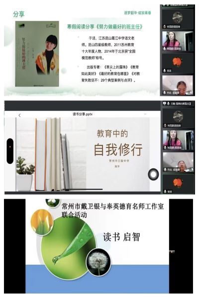 伟大的教育家夸美纽斯曾说过:“书籍是培植智慧的工具。” 读书能让人得新知,增学问,养性灵。教师的精神成长,需要高品位阅读的滋养;教师的专业发展,需要经典专著的引领。为了陶冶教师高尚情操,提升班主任专业能力,加强教师间的交流,2022年11月25日,戴卫银德育名师工作室全体成员、常州市奉英名师工作室全体成员、教育人才“组团式”帮扶校岚皋职教中心班主任和市高景瑞“鸿雁”班主任工作室成员相聚云端品书香,举行了“读书﹒启智”读书沙龙活动。